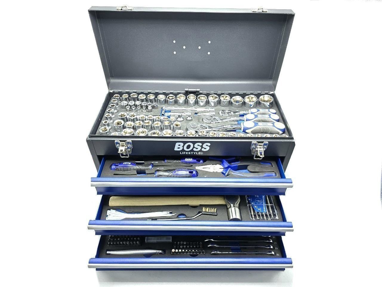 جعبه ابزار 408 پارچه حرفهای باس BOSS یکی از کاملترین، قدرتمندترین و پرفروشترین ستهای ابزار موجود در بازار است که بهصورت تخصصی برای کارهای سنگین، صنعتی و تعمیرگاهی طراحی شده است. این مجموعه شامل کاملترین ست بکس، آچار، پیچگوشتی، ابزار دستی و متعلقات جانبی بوده و پاسخگوی تمامی نیازهای تعمیرکاران حرفهای، مکانیکها، نصابها، تکنسینها و کاربران خانگی حرفهای میباشد.