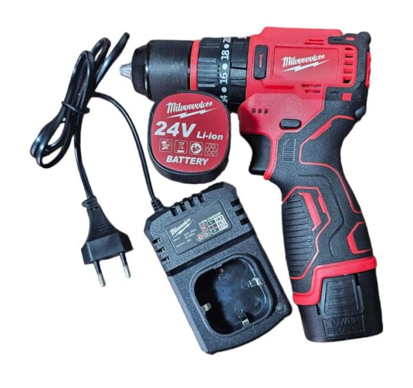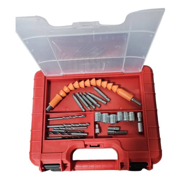 به همراه تعدادی لوازم جانبی مانند مته چوب و فلز ، تعدادی نوک پیچ گوشتی چهارسو و دوسو ، رابط خرطومی ، تعدادی بکس و رابط سر دریلی