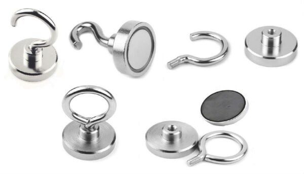 از مگنت قلابدار آهنربای نئودیمیومی به عنوان گیره در کمد، دیوار و سقف کاذب برای اتصال بنر، وسایل روشنایی و دیگر اجسام استفاده می شود که این قلاب های مغناطیسی در دو سایز ۲۵ و 20 میلی متری موجود میباشد.